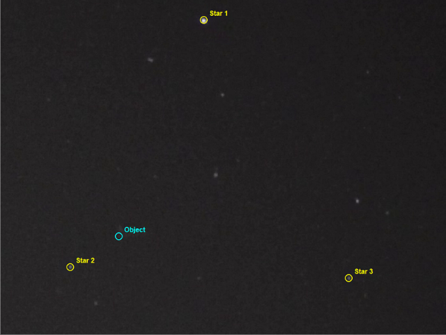 By carefully examining the moment this object passed the star Delta Lyrae in the Lyra constellation, we could see a parallax shift between the two cameras, confirming the object was significantly closer than the distant stars. In fact, at 26 feet separation between our cameras, the object would be much closer than most airplanes for us to detect this amount of visual shift.
