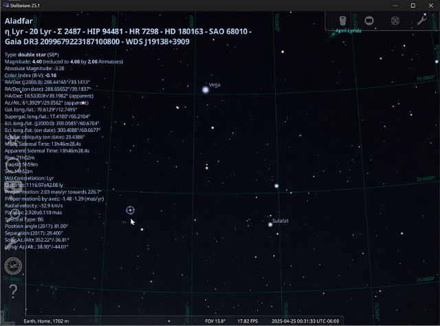 To determine its precise location and size, we used three nearby stars - Vega, Sulafat, and Aladfar - as reference points. By calculating the angles to these stars from each camera's perspective at the same exact moment (synchronized very exactly using meteors captured on both feeds), we could triangulate the object's position and velocity in the sky using some specialized astronomical calculations.