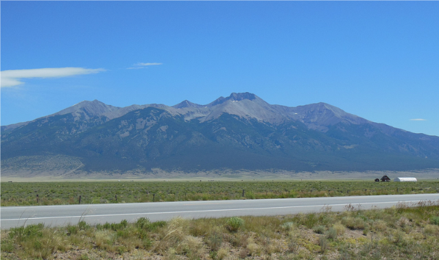 South-east of the UFO Watchtower a few miles, and highly visible from the tower, stands Mount Blanca.