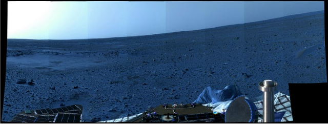 All this means the sky and rocks might be more blue instead of red, and no lichens, moss, critters, or minerals will show up in green anywhere in the panorama. That's the conspiracy theory side of things. It's also quite possible the fine folks at Cornell simply mixed and matched the color channels of the original raw image until the rocks and sky looked really cool and appropriate for public consumption. Let's investigate a little deeper.