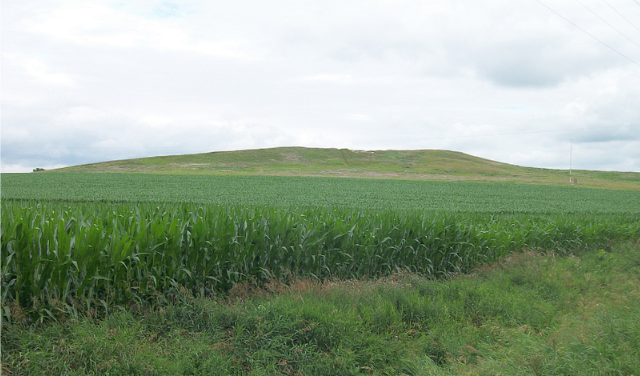 The land north of the Missouri River in South Dakota, just north of Vermillion, is flat prairie as far as the eye can see, except for one 90 foot high mound or hill with a short ridgeline that runs perfectly north and south. Geologists believe this hill is a natural feature of the otherwise flat landscape, but no digging is allowed on the property to absolutely verify that it is not man-made.