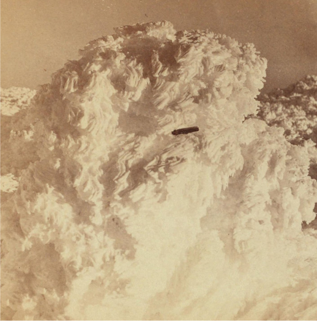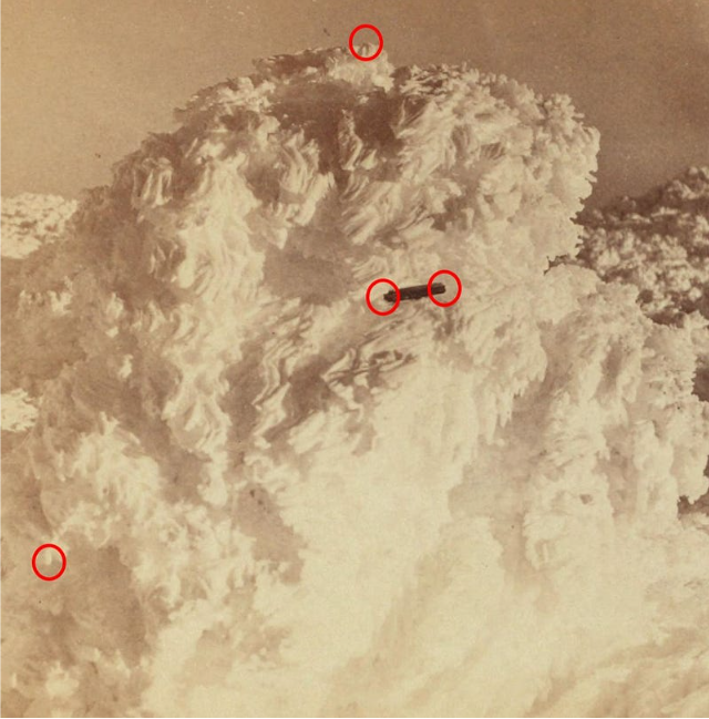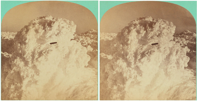 Of course, since this was a photo taken in 1870, perhaps the level of technology was such that it was a time exposure, and perhaps the camera had moved or jiggled during the exposure. That felt reasonably possible, although the black cylindrical object in front of the cloud wasn't affected in the same way. I was determined to find out what was going on in this photo.