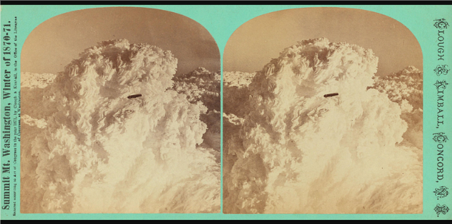 The first regular meteorological observations on Mount Washington were conducted by the U.S. Signal Service, a precursor of the Weather Bureau, starting in 1870. Also in that same year, the first commercially available stereoscopic cameras became popular. It turns out that the famous photo shown above is actually one side of a photo that can be viewed in one of the old-timey hand-held 3D viewers of the day.
