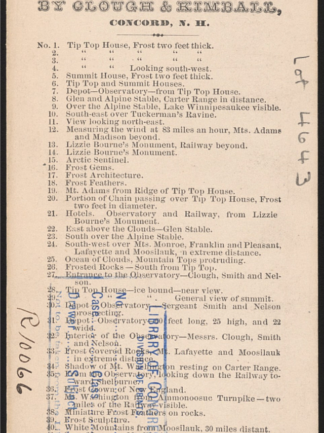In my research I found the log for all the photos taken in 1870 at Mt. Washington by "Clough & Kimball", the names also printed at the edges of the stereoscopic images.